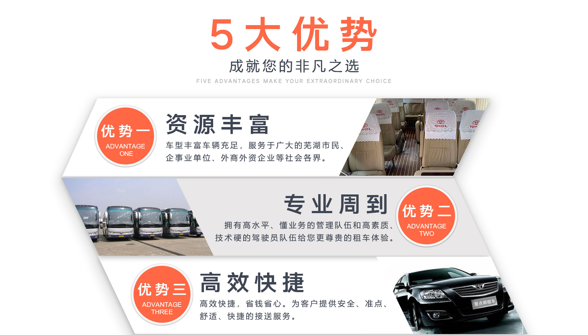 蕪湖壹點(diǎn)順汽車(chē)服務(wù)有限公司,自成立以來(lái)堅(jiān)持以“安全至上、服務(wù)至上、信譽(yù)至上”為宗旨,服務(wù)于廣大的蕪湖市民、企事業(yè)單位、外商外資企業(yè)等社會(huì)各界。蕪湖市是經(jīng)濟(jì)發(fā)展中的城市,在市運(yùn)管處的領(lǐng)導(dǎo)和指導(dǎo)下,公司秉承顧客至上的經(jīng)營(yíng)理念,周到服務(wù),踏實(shí)經(jīng)營(yíng)。公司經(jīng)營(yíng)車(chē)輛轎車(chē)全部裝備車(chē)輛GPS全球定位監(jiān)控系統(tǒng),能夠?qū)?chē)輛全程監(jiān)控。同時(shí)公司長(zhǎng)期承擔(dān)蕪湖本地多家大型企業(yè)的單位員工接送。同時(shí)多次承接了蕪湖大型會(huì)議用車(chē)。公司...